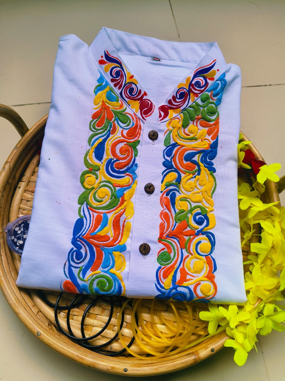রঙধনু আলপনা হ্যান্ড পেইন্ট পাঞ্জাবিপ্রিমিয়াম কোয়ালিটির এম্বুশ থ্রিডি পেইন্ট পাঞ্জাবি